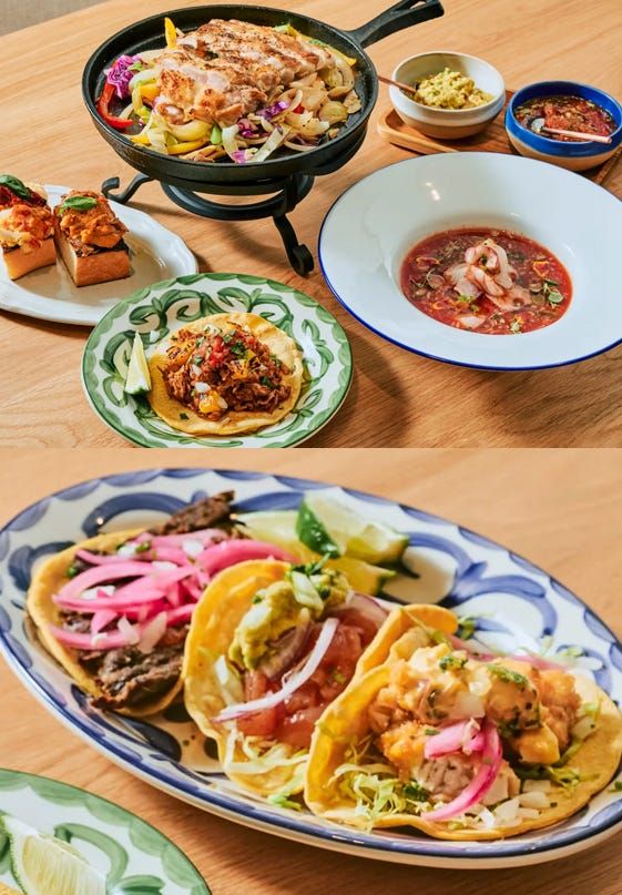 料理は、鎌倉野菜や駿河湾の魚介、旬の食材を贅沢に取り入れ、和の繊細な感性を重ねたメキシカン・フレンチを展開。ラテン料理の自由な発想をベースに、香ばしく焼き上げた肉料理「ファヒータ」や「セビーチェ」、季節の「タコス」、そしてカカオモーレ香るステーキまで、素材と文化が自在に交わる。