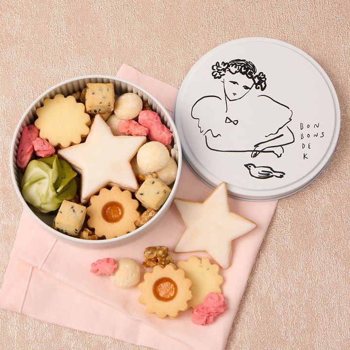 湘南・茅ヶ崎にある「ボンボン ドゥ カ」は、グルテンフリーのクッキー缶が人気のパティスリー。クリスマス限定のクッキー缶「ラ ヴォーテ ア ボヌール ノエル」は、フランス語で“クリスマスのしあわせ箱”の意味。その名の通り、開けた瞬間から心が躍るクッキーがぎっしりと詰まっている。中には、抹茶ブランショコラやアプリコットコンフィチュールを忍ばせたサブレや、香り豊かなローズマリーのサレ、愛らしいフランボワーズメレンゲ、カリッと香ばしいくるみのキャラメリゼなど、8種の多彩なフレーバーがラインナップ。イラストレーター・網中いづる氏による乙女心をくすぐる愛らしい缶で、ホリデー気分を一層引き立ててくれる。