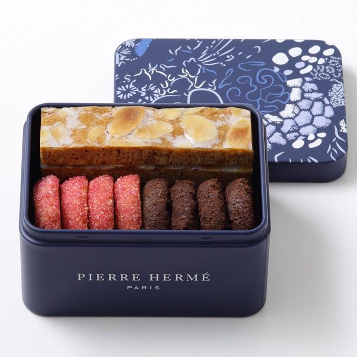 毎年、スイーツ好きが心待ちにしている「ピエール・エルメ・パリ」のクリスマスコレクション。2025年のテーマは、静寂に包まれた深海に息づく生命の神秘から着想を得た「アビス〈深海〉―奥深い味わい」。陶芸彫刻家であり環境活動家でもあるコートニー・マティソン氏が手がけた、サンゴや海綿のアートをあしらったラインナップだ。深いブルーが印象的な缶の中には、スパイスとはちみつを合わせたソフトクッキー「レキャリ」、ブランドを象徴するバラとフランボワーズ、ライチが香る「イスパハン」、そしてカカオの力強い風味が広がる「アンフィニマン ショコラ」のサブレがアソートに。アートピースのように美しいデザインの缶とともに楽しむ、特別なひとときを楽しもう。