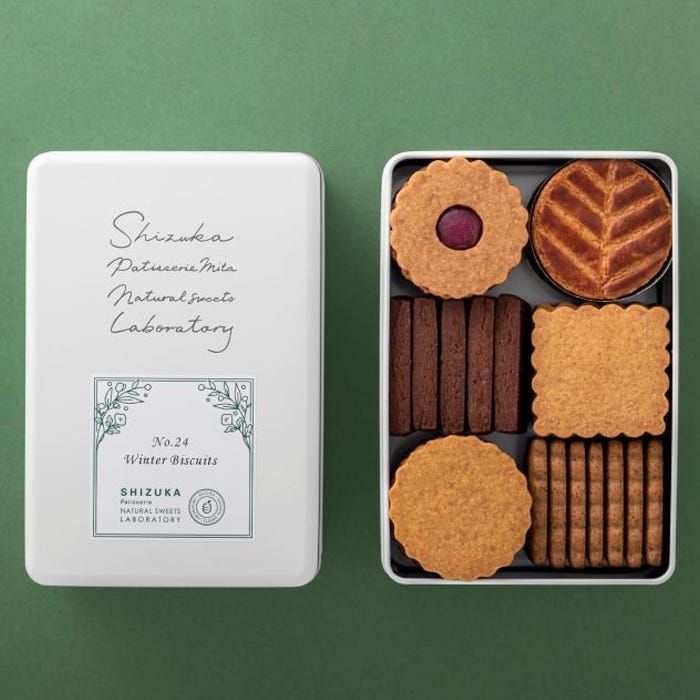 東京・三田に本店を構える「シヅカ洋菓子店 自然菓子研究所」。地球環境に配慮したサステナブルな栽培方法で育てられた原料をできる限り使用し、丁寧に作られるスイーツが高い支持を集めている。今年9月には「ニュウマン高輪」に新店をオープンし、さらに話題を呼んでいる。冬限定のビスケット缶は、北海道産無農薬栽培のフランボワーズを使用した「フランボワーズジャムサンド」、きび糖キャラメルと天然岩塩を使用したざくざく食感の「キャラメルビスケット」、香り高いベルガモットを有機和紅茶と合わせた「アールグレイビスケット」など、リッチな味わいと香りが楽しめる焼き菓子が6種類入っている。滋味深い味わいのビスケット缶は、ホリデーシーズンにゆっくりと堪能したい。
