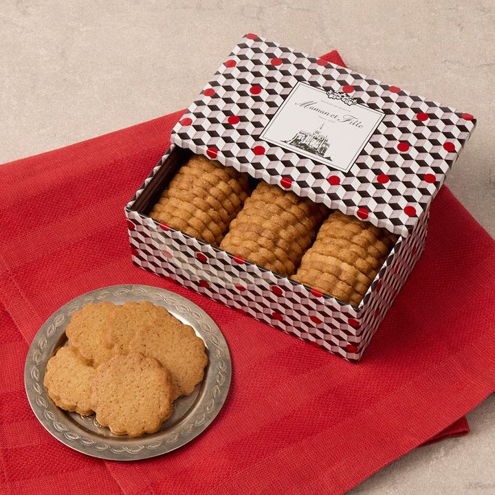 フランスの伝統製法と上質な素材で仕上げる「フレンチビスキュイ缶」が人気の、フランス焼き菓子専門店「マモン・エ・フィーユ」。季節限定の「ジンジャービスキュイ缶」は、冬の訪れを感じさせる味わいだ。レシピはフランスの昔ながらの製法に忠実。すりおろしたしょうがとスパイスを加えた生地を、一枚ずつ丁寧に焼き上げている。ひと口味わえば、軽やかなサクッとした食感とともに、深い甘み、そしてスパイスの奥行きある香りがふわりと広がる。特別仕様の缶にも注目を! シックなカラーを基調に、トリコロール柄をあしらった缶は、上品さと遊び心を感じさせるデザインだ。