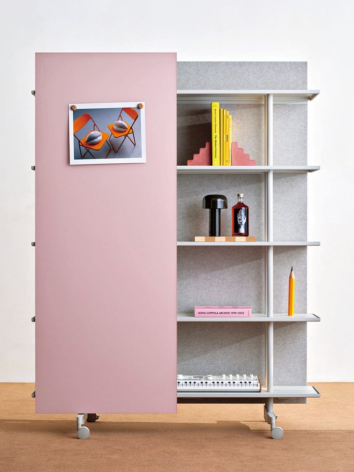 スウェーデン発のオフィス家具ブランド、「リンテックス」が展開するボード付きの棚ユニット。ボードはペンで書き込みができるガラス製のボードや、吸音性を備えるファブリックボードからカスタムが可能。空間の間仕切りとしても使える。
