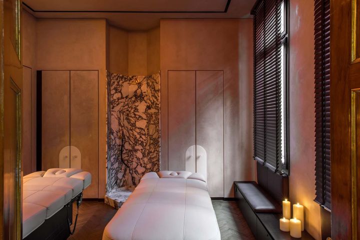 ノリンスキが提供するのは、ヴェネツィアが誇る美しい屋根の景色だけではない。ここでは、2つのスパ体験を楽しむことができる。美容トリートメントと、瞑想を取り入れたリラクゼーションだ。デザインは、ヤン・ル・コアディックとアレッサンドロ・スコット。施設内では、オスマン建築に着想した建物に金色のモザイクタイルをあしらったプールを設置した。トリートメントには、最新のテクノロジーを導入。ほかでは見ることのない美しさをたたえた環境で、極上のリラックスタイムを過ごすことができる。