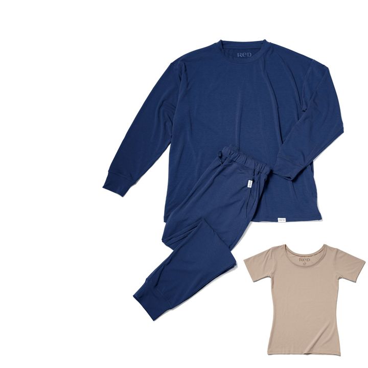 「血行から毎日を元気にする、24時間リカバリーウェア」をコンセプトとして掲げるブランド「レッド」。圧倒的な薄さが特徴の「MTG」の独自繊維「バイタルテック®」を使用した生地は、軽やかでさらりとした触り心地です。吸水性と速乾性に優れ、寝ている間に汗をかいてもべたつきません。そのため、一年を通して快適に着用できるのも嬉しいポイント。締め付けのない、ほどよいフィット感で体を優しく包んでストレスフリーな休息のひとときを叶えます。