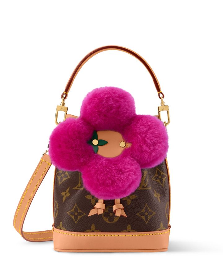 メゾンのシグネチャーであるモノグラム・キャンバスを纏ったコンパクトなバケットバッグに、鮮やかなフローズンオーキッドカラーに彩られた“ヴィヴィエンヌ”が大胆にあしらわれた「ノエ・ウェア ヴィヴィエンヌ」。ふわふわとしたシアリング素材が冬らしさを華やかに引き立てます。着脱可能なストラップを使ってさまざまな持ち方でスタイリングできるミニバッグです。