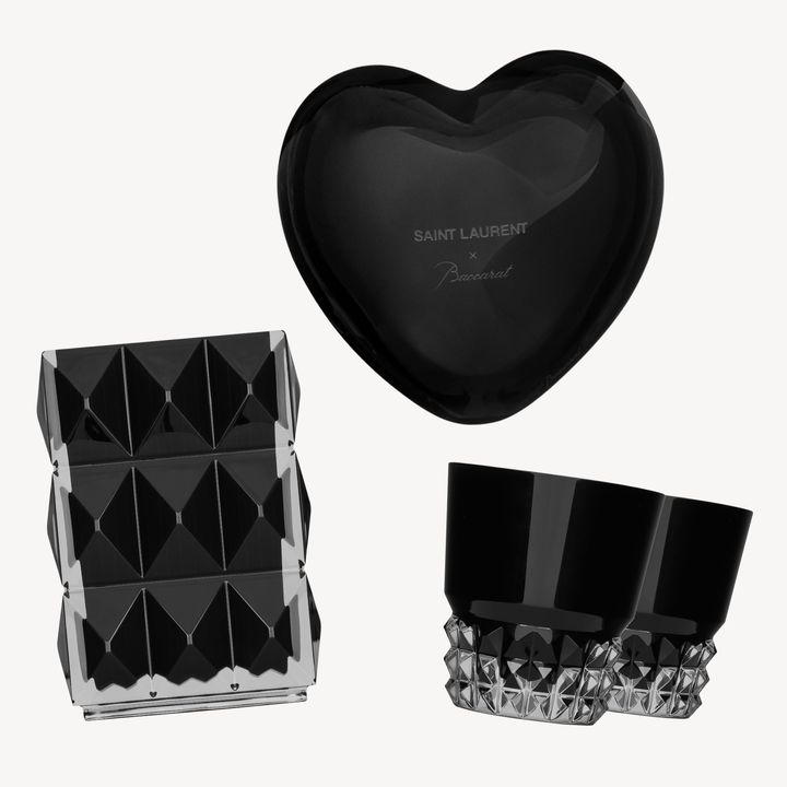 〈左から時計回りに〉<a href="https://www.ysl.com/ja-jp/pr/%E3%83%90%E3%82%AB%E3%83%A9%20%E3%83%AB%E3%82%AF%E3%82%BD%E3%83%BC%E3%83%AB%20%E3%83%99%E3%83%BC%E3%82%B9%EF%BC%88%E3%83%96%E3%83%A9%E3%83%83%E3%82%AF%E3%82%AF%E3%83%AA%E3%82%B9%E3%82%BF%E3%83%AB%EF%BC%89-619995YCL111000.html" target="_blank" rel="nofollow">“バカラ ルクソール ベース”¥275,000</a>、<a href="https://www.ysl.com/ja-jp/pr/%E3%83%90%E3%82%AB%E3%83%A9%20%E3%83%8F%E3%83%BC%E3%83%88%EF%BC%88%E3%83%96%E3%83%A9%E3%83%83%E3%82%AF%E3%82%AF%E3%83%AA%E3%82%B9%E3%82%BF%E3%83%AB%EF%BC%89-619994YCL111000.html" target="_blank" rel="nofollow">“バカラ ハート”¥107,800</a>、<a href="https://www.ysl.com/ja-jp/pr/%E3%83%90%E3%82%AB%E3%83%A9%20%E3%83%AB%E3%82%AF%E3%82%BD%E3%83%BC%E3%83%AB%20%E3%82%B0%E3%83%A9%E3%82%B9%EF%BC%88%E3%83%96%E3%83%A9%E3%83%83%E3%82%AF%E3%82%AF%E3%83%AA%E3%82%B9%E3%82%BF%E3%83%AB%EF%BC%89-619993YCL111000.html" target="_blank" rel="nofollow">“バカラ ルクソール グラス( 2個セット)”¥187,220</a> Hearst Owned