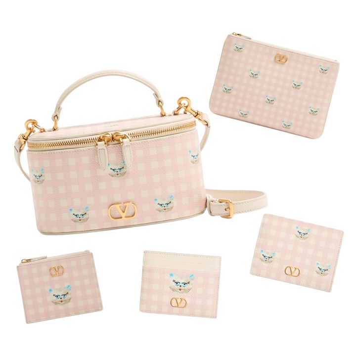 〈上左から時計回りに〉<a href="https://www.valentino.com/ja-jp/product-vlogo-signature-mini-vanity-bag-in-le-chat-de-la-maison-grainy-calfskin-WP0AX8JVH_9PK?tskay=7D74C94E&TP=157729&utm_campaign=8.+Valentino_JP_Shopping_PMAX_Non-ACC&utm_source=GOOGLE&utm_medium=cpc&utm_content=&utm_term=&utm_country=JP&utm_type=SEARCH&s_kwcid=AL!11557!10!!!!x!!&gclid=Cj0KCQiAoZDJBhC0ARIsAERP-F8XUPxwuVq0tA5kL6jzo1WO6XmvRAUpElr2H2nPYHG_6B-EVlNfAs0aAmxpEALw_wcB&gclsrc=aw.ds&gad_source=1&gad_campaignid=17951335672&gbraid=0AAAAADB0lG20vApciLQ8p2aye1ijlB8Ne" target="_blank" rel="nofollow">ヴァニティバッグ【H10×W17×D9㎝】¥228,800</a>、<a href="https://www.valentino.com/ja-jp/product-vlogo-signature-clutch-bag-in-le-chat-de-la-maison-grainy-calfskin-WP0AK4JVH_9PK?xse_prod_code=WP0AK4JVH_9PK&xse=sm_el_7b755caecf89443fa44e5abc87976df8" target="_blank" rel="nofollow">ポーチ【H16×W24㎝】¥103,400</a>、<a href="https://www.valentino.com/ja-jp/product-vlogo-signature-wallet-in-le-chat-de-la-maison-grainy-calfskin-WP0AJ3JVH_9PK" target="_blank" rel="nofollow">フラップフレンチウォレット【H8.5×W11.5×D3㎝】¥79,200</a>、<a href="https://www.valentino.com/ja-jp/product-vlogo-signature-le-chat-de-la-maison-cardholder-in-grainy-calfskin-WP0AJ7JVH_9PK" target="_blank" rel="nofollow">カードホルダー【H8×W10㎝】¥47,300</a>、コインパース/カードケース【H8.5×W11×D1㎝】¥56,100 Hearst Owned