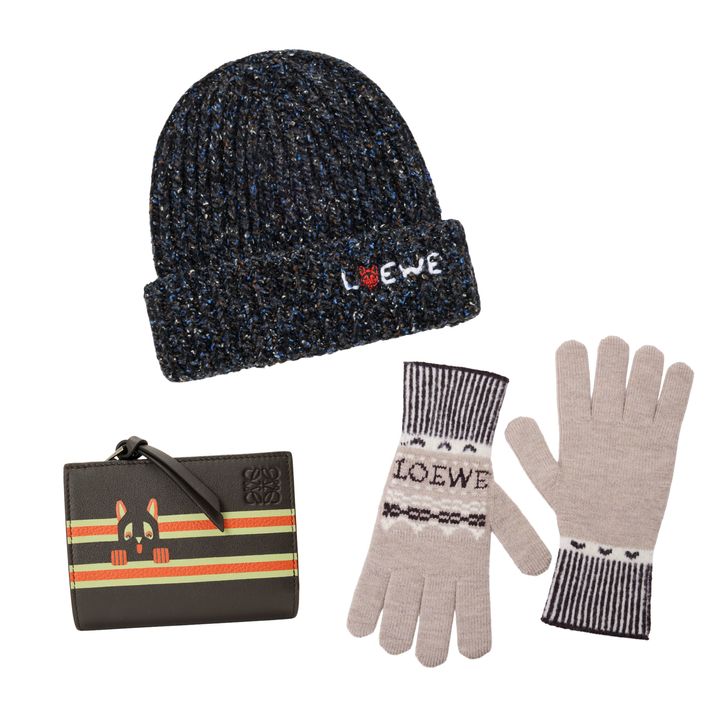 〈左上から時計回りに><a href="https://www.loewe.com/jap/ja/%E3%82%A6%E3%82%A3%E3%83%A1%E3%83%B3%E3%82%BA/%E3%82%A2%E3%82%AF%E3%82%BB%E3%82%B5%E3%83%AA%E3%83%BC/%E5%B8%BD%E5%AD%90%EF%BC%86%E3%83%98%E3%82%A2%E3%82%A2%E3%82%AF%E3%82%BB%E3%82%B5%E3%83%AA%E3%83%BC%C2%A0/%E3%83%93%E3%83%BC%E3%83%8B%E3%83%BC_%E3%82%A6%E3%83%BC%E3%83%AB-%E3%82%B7%E3%83%AB%E3%82%AF-%E3%82%A2%E3%83%AB%E3%83%91%E3%82%AB%E3%83%96%E3%83%AC%E3%83%B3%E3%83%89_/KSA9OT2K03-6000.html?p=2" target="_blank" rel="nofollow">ビーニー¥57,200</a>、<a href="https://www.loewe.com/jap/ja/variation?dwvar_KSF2OT4K01-3046_Shared_size=null&gad_campaignid=1711972957&gad_source=1&gbraid=0AAAAADB-m1bSesqg3zaFWS43RQSzs-Mc4&gclid=Cj0KCQiAoZDJBhC0ARIsAERP-F_wbYn9AKtx8pY3cKP_UtubIYcY19_vpNQZPicztA4GWRcRBlT7zvoaAuFfEALw_wcB&pid=KSF2OT4K01-3046&utm_campaign=LoeweModa_FLG_JPN_Shopping-All-Products_GEN_OTHER_ON-GOING_EC_SHOP_GSHO_CRD_ENG_JPY_NAPP&utm_id=1711972957&utm_medium=cpc&utm_source=google" target="_blank" rel="nofollow">グローブ¥44,000</a>、<a href="https://www.loewe.com/jap/ja/%E3%82%A6%E3%82%A3%E3%83%A1%E3%83%B3%E3%82%BA/%E8%B2%A1%E5%B8%83%EF%BC%86%E5%B0%8F%E7%89%A9/%E4%BA%8C%E3%81%A4%E6%8A%98%E3%82%8A%E8%B2%A1%E5%B8%83/%E3%83%95%E3%83%A5%E3%83%BC%E3%83%81%E3%83%A3%E3%83%AA%E3%82%B9%E3%83%88-%E3%82%AD%E3%83%A3%E3%83%83%E3%83%88-%E3%82%B3%E3%83%B3%E3%83%91%E3%82%AF%E3%83%88-%E3%82%A6%E3%82%A9%E3%83%AC%E3%83%83%E3%83%88_%E3%82%AF%E3%83%A9%E3%82%B7%E3%83%83%E3%82%AF%E3%82%AB%E3%83%BC%E3%83%95_/C643NCWX12-0155.html?p=6" target="_blank" rel="nofollow">財布【H8.5×W11.4×D3㎝】¥115,500</a> Hearst Owned
