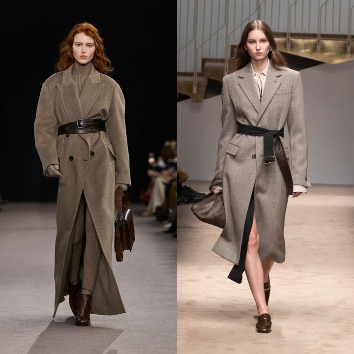全体をブラウンのトーンで統一したMAX MARA(マックスマーラ)は、ビジネスからオフまで、あらゆるシーンに馴染む端正なコートにブラックのベルトをオン。ウエストを細く強調することで、ボディラインを美しくしなやかに整えています。TOD’S(トッズ)からは、シャツを覗かせたリアルなコートスタイルをクローズアップ。ハンサムなコートもウエストマークすることで女性らしい柔らかなニュアンスが生まれます。日常をアップデートするヒントとして取り入れてみてください。
