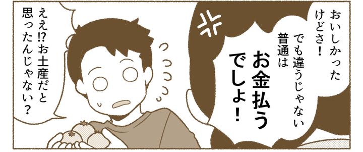 夫は「お土産だと思ったんじゃない?」とのんきなことを言っていますが、お土産にしては高すぎると思わないのでしょうか。もし私がもらった立場だったら、最低でも実費は支払います。