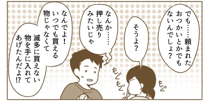 夫から「押し売りみたい」なんて言われましたが、そんなの失礼な話です! だって、いつも買えるとは限らないレアな物を手に入れてあげたんですから。