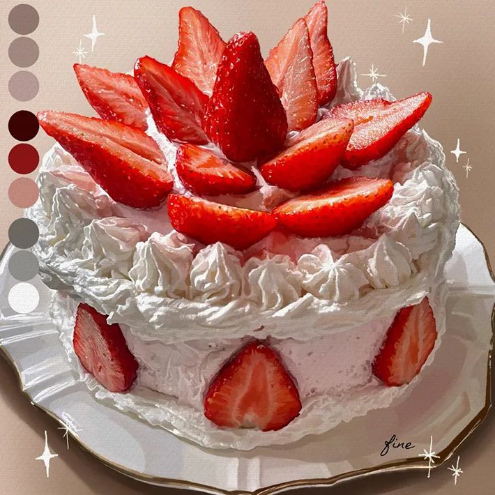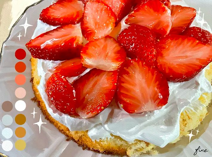 そう、実はこのおいしそうなイチゴのショートケーキは写真ではなくFiNeさんが描いた絵だったのです!