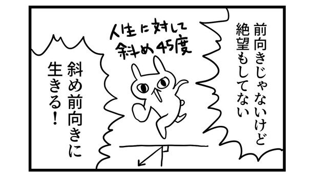 自分の性格について考えた1コマが気に入っています。「人生に対して斜め45度」という言葉を思いついたとき、すごく気持ちよかったです(笑)