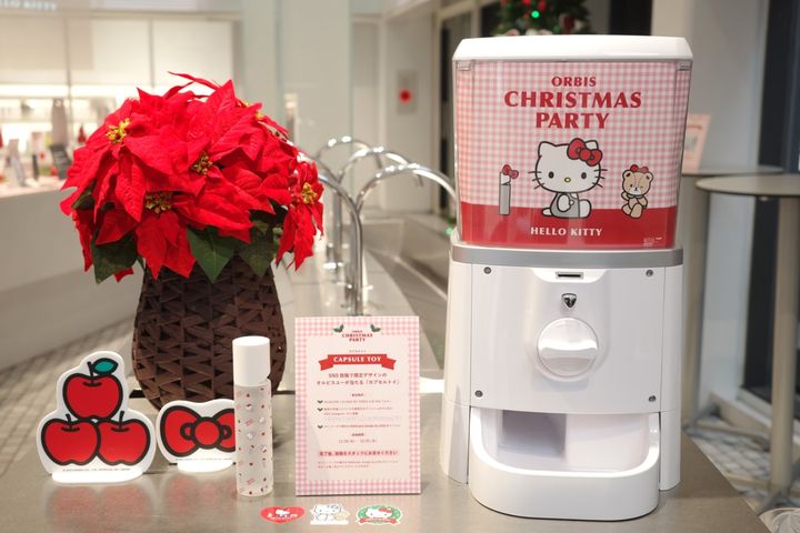 『ORBIS CHRISTMAS PARTY collaboration with HELLO KITTY』では、イベントの様子をSNSに投稿すると、プレゼントが必ず当たるカプセルトイが体験できる特典も。