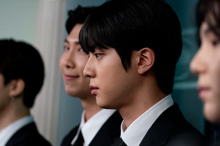 ホワイトハウスを訪問し、アジア系へのヘイトクライムや差別対策などについて、バイデン大統領と会談したBTS。記者会見の場で、真摯な横顔を見せた。