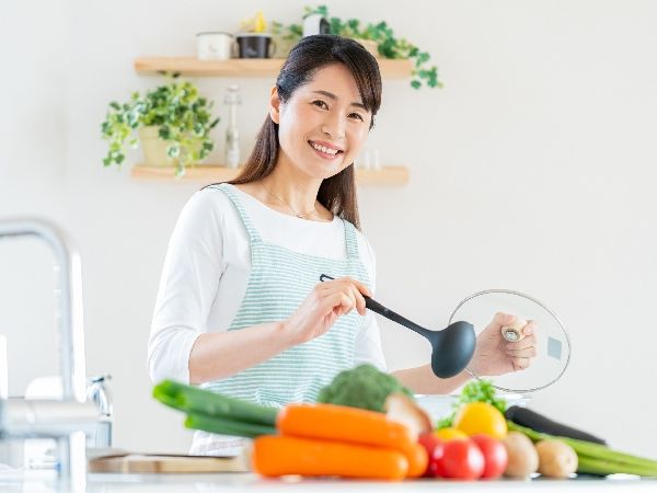 食事の際は、米やパンなどの炭水化物からではなく、野菜などのおかずから食べるようにすると血糖値が急激に上がりにくくなります。さらに、よく噛みながらゆっくり食べることも大切。噛むこと自体が脳の刺激になりますし、消化もよくなって一石二鳥です。