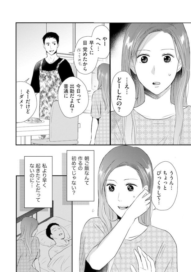 3. 初めて朝食を作ってくれた夫。いつもと違う妙に優しい態度が気になるが…/DINKsのトツキトオカ⑤