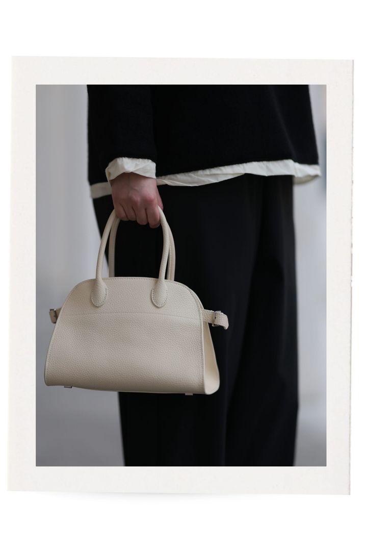 人気の理由をすぐに実感。約42cmの絶妙なハンドルは長すぎず短すぎず、カーフレザーのなめらかさで身体にフィット。ミニサイズでも意外と収納力があり、深みのあるオリーブはカジュアルにもシックにも自然になじむ。そして約300gという軽さ。気づけば毎日手に取っています。シンプリシティを極める『ザ・ロウ』クオリティの高さを改めて痛感する日々です」