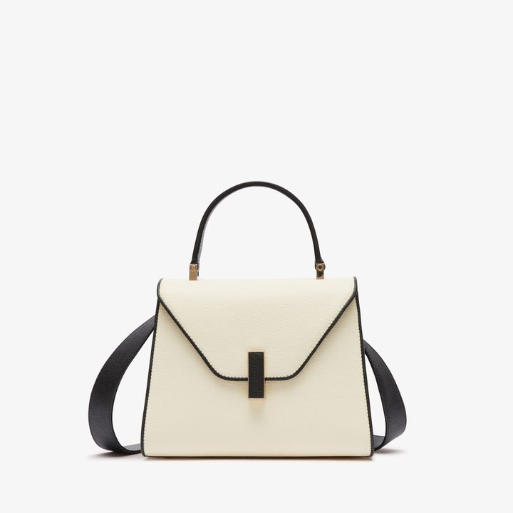 “イジィデ”は、「ヴァレクストラ」を代表するアイコンでありベストセラー。建築的で優美な台形フォルムと、傷や汚れに強い上質なレザーを掛け合わせた、クラフツマンシップを体現するたたずまいにほれぼれ。人気のバイカラーは、ペルガメーナホワイトとブラックのコントラストがスタイリッシュ。