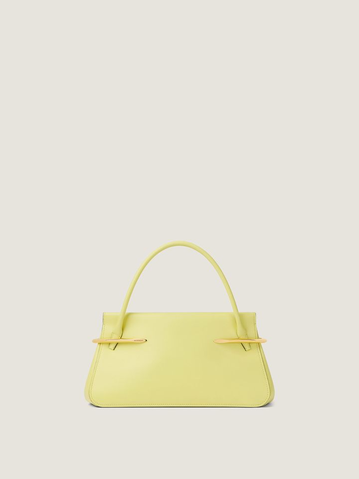 クリエイティブ・ディレクターのサラ・バートンが手がける「ジバンシィ」から登場した“ピンチ”。裁断や折り、つまむといった服づくりの所作に着想を得たデザインで、封筒のように折り畳んだレザーを、ゴールドのピンチ型ブラケットで留めた独自のシルエットが印象的。アシッドイエローの発色がモードなアクセントとなり、スタイルに新鮮さを添える。
