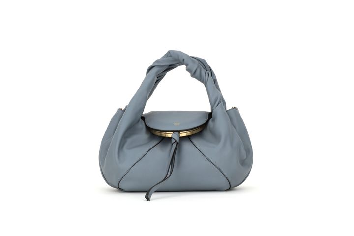 2000年代を席巻したイットバッグ“フェンディ スパイ”が、モダンな感性をまとってカムバック。象徴的なツイストハンドルや隠しポケットなどの遊び心はそのままに、マーキュリーブルーのカーフレザーが鮮やかな存在感を放つ。丸みのあるフォルムにメタルの光がきらりと映え、手にするだけで気持ちが高まる。時代を超えて再び輝きを見せる、アイコンバッグをぜひ手にしたい。
