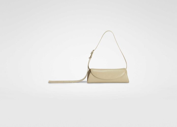 モードラバーの愛用率が高い“カンノーロ”は、シチリア菓子を思わせる筒状フォルムがアイコニック。滑らかなレザーがつくる曲線が肩になじみ、ストラップ調整でクロスボディにもアレンジしやすい。必要なものがしっかり入る実用性と、無駄をそぎ落としたフォルムが醸すクリーンなムードが魅力。なかでも“アーモンド”は、「ジル サンダー」らしいヌードトーンが映える、ワードローブに寄り添う万能カラー。