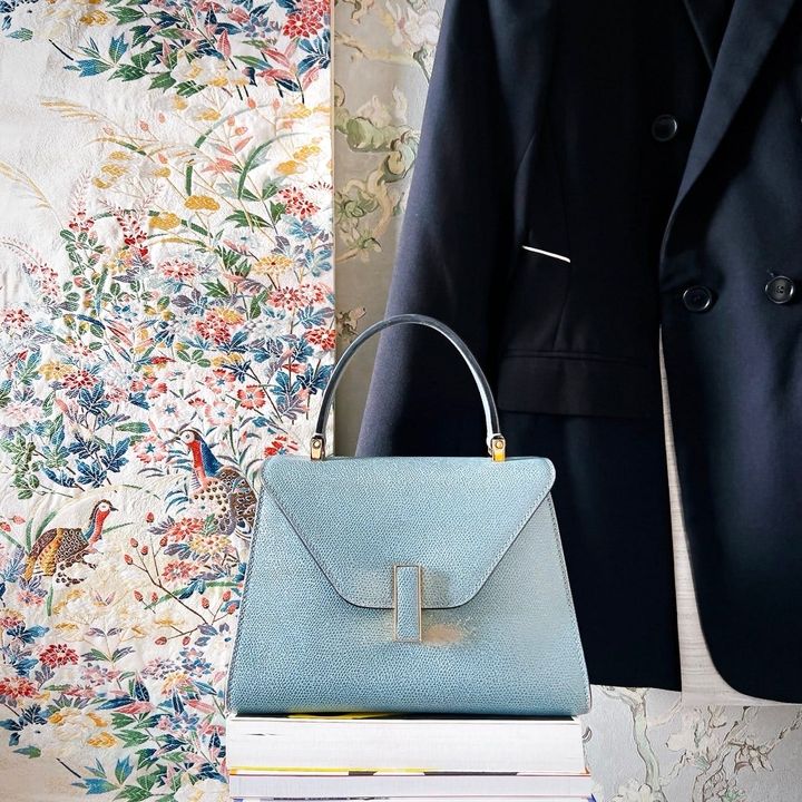 ミニサイズは意外に容量も大きく、こなれ感抜群のパウダーブルーも推しポイント。次は、お着物をさらに華やかにしてくれそうなグラフィカルなパターンに挑戦してみたいと思っています」