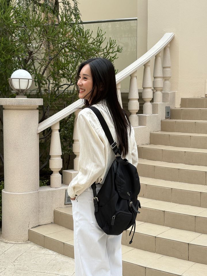 「このバッグはジャーナリストのエヴァ・チェンさんがInstagramでおすすめしている投稿を見て即購入を決めました! とにかく大容量で、2つのコンパートメントがあり、ひとつにはPC、もうひとつにはこまごましたものを収納。フロントにダブルファスナー付きポケットもあるので海外出張の際には、そこに貴重品を入れています。
