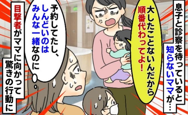 3. 息子の診察待ち中「大したことないでしょ!」見知らぬママから理不尽な要求。困惑していると…目撃者が