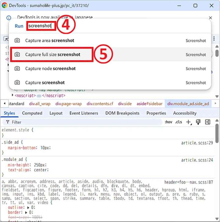 2:Chrome標準機能だけでWebページ全体をスクロールキャプチャ