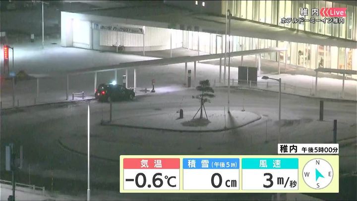 夜は雪で、転びそうになってますね。朝は晴れても夕方から雪が降って、お帰りの時間はうっすら積もるおそれがあります。一日を通して気温は0度くらいなので、厚手の上着と手袋、マフラーなどの防寒アイテム、そして冬靴があると安心です。