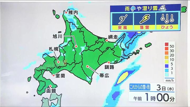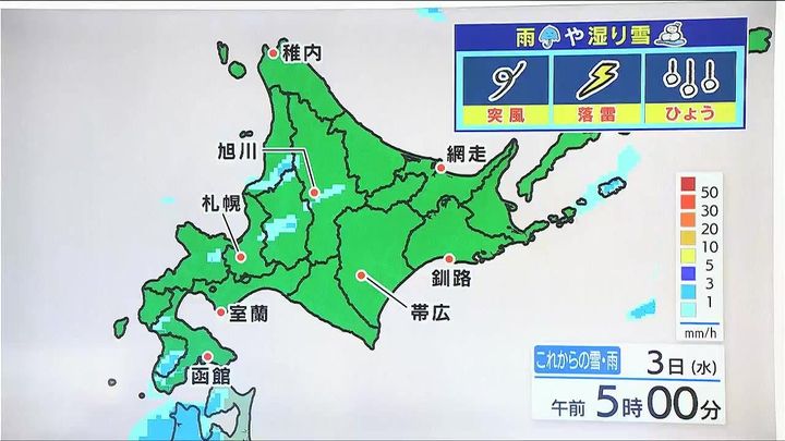 ※3日午後5時時点の情報です。最新の気象情報は、HBCウェザーセンターのホームページなどでご確認ください。HBCは気象庁の認可を2001年に得て以来、民間気象会社の一つとして「HBCの独自予報」を発信しています。