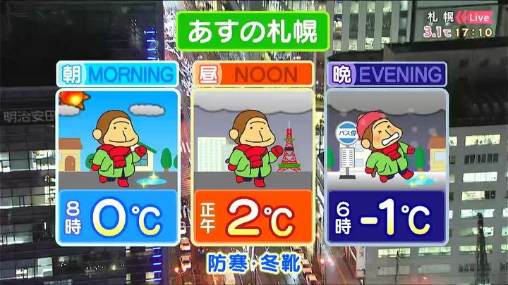 あす3日(水)の札幌です!朝昼晩の天気をもんすけでお伝えします!