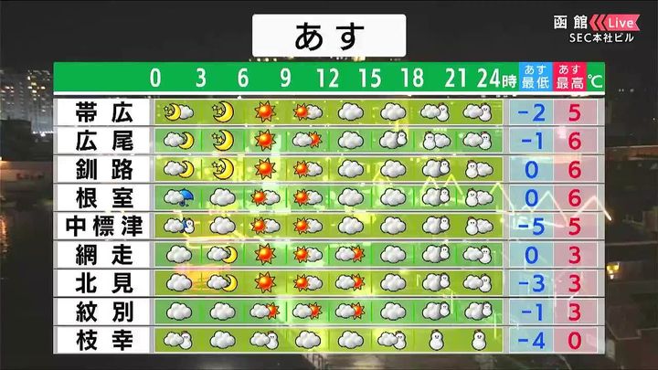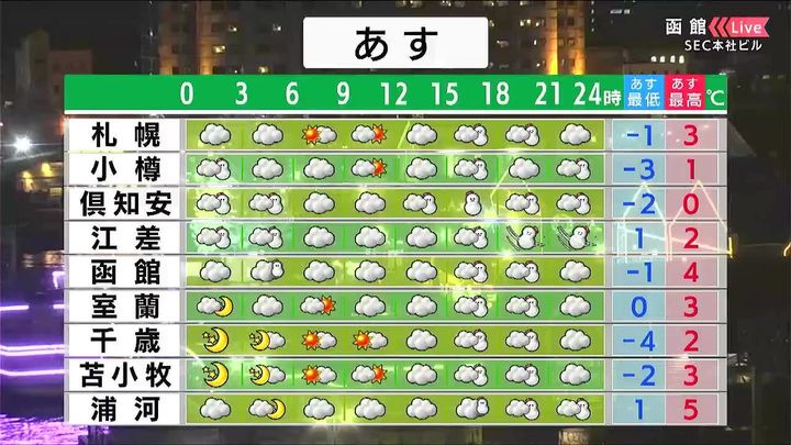 あす3日(水)の時間ごとの天気。道央・道南からです。