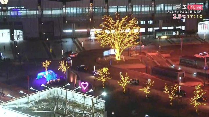 今夜は湿った雪が降るため、イルミネーションを見に行く際は傘が必要です。あす3日(水)朝は植え込みなどが雪でうっすら白くなりそうです。