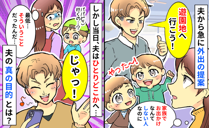 外出が嫌いな夫が急に「遊園地へ行こう!」しかし息子たちと私を置いて単独行動…はぁ?夫の真の目的は