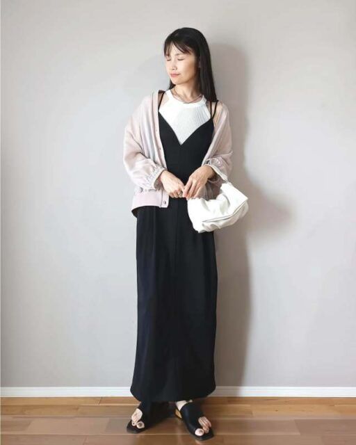 スカートジャンルとして「ジャンパースカート・キャミワンピース」も使い勝手がよくおすすめです。下に着るトップスを替えるだけで印象が変わるので、一泊二日程度ならボトムはこれ1枚でOK。ウエストまわりがラクなのでリラクシーに過ごせますよ。