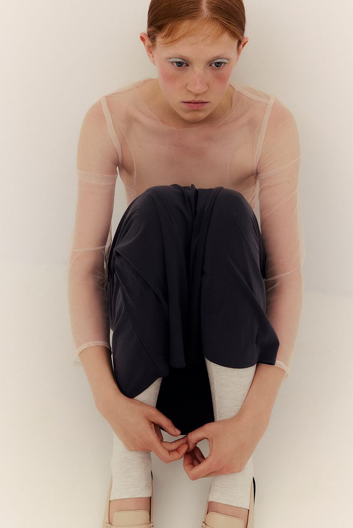 top by LEMACHET, skirt by JIL SANDER and leggings by WOLFORD