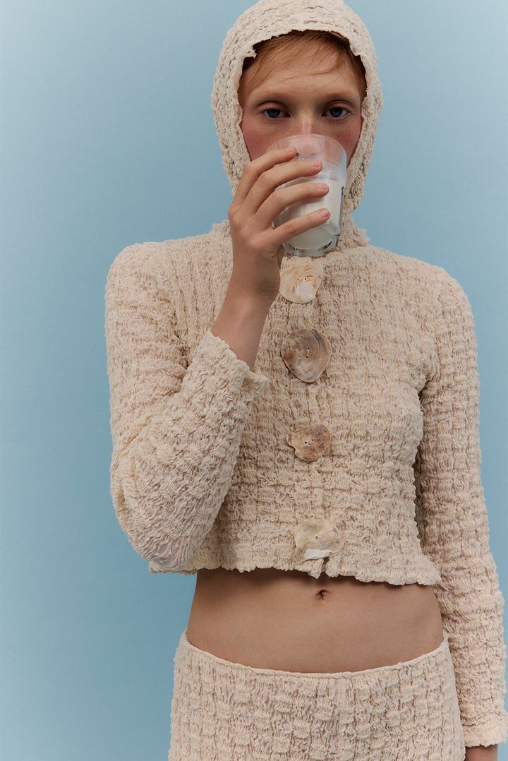 シンプルな仕草や落ち着いた雰囲気を捉え、クリーンなスタイリング、冬の柔らかなカラーと質感をまとっています。