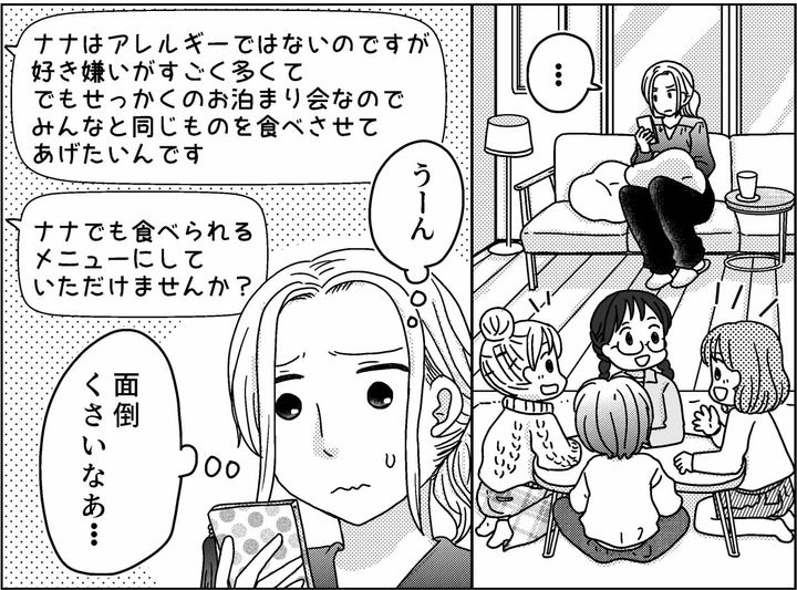 <偏食ってめんどくさい!?>仲良しメンバーでお泊まり会。要望の多い母親にイライラ【まんが】
