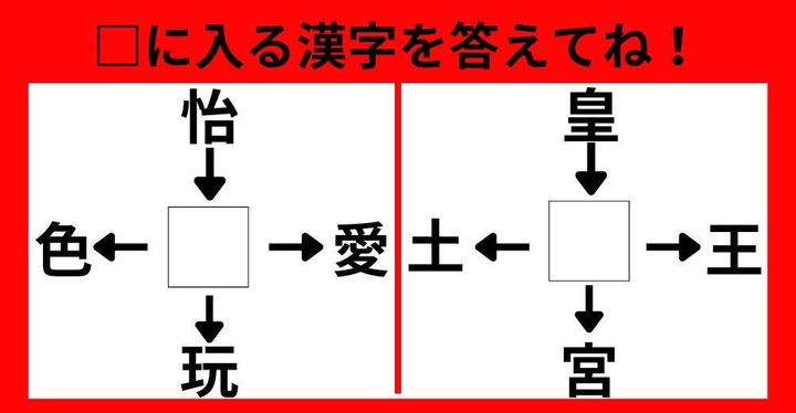 3. 【漢字パズル】怡□、□愛、□玩、□色 □に入る漢字は何…?