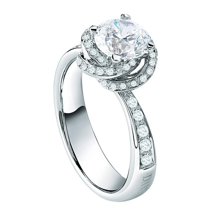 蕾が花開くような彫刻的フォルムが美しい。“ボッチョーロ コレクション”[Pt×ダイヤモンド、センター1ct]¥3,357,200(ダミアーニ/ダミアーニ 銀座タワー tel.03-5537-3336)