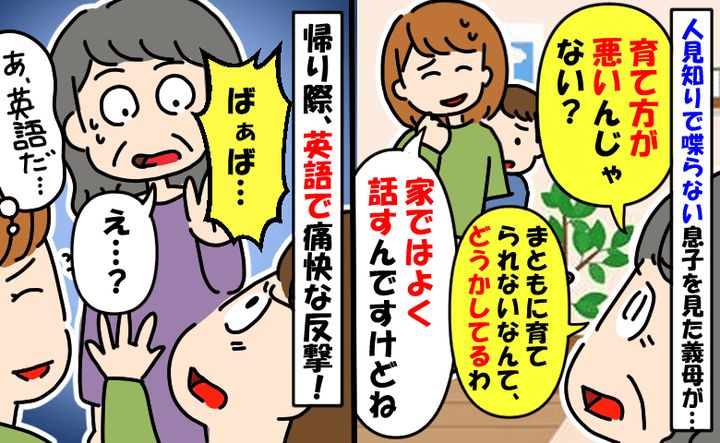 義母の前では喋らない2歳の息子「育て方がどうかしてるわ」私を責める義母に息子が英語で痛快なひと言!