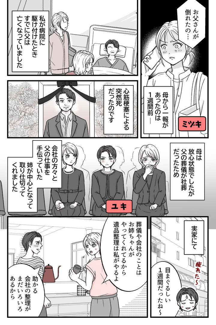 父の突然の死から1週間。悲しみと混乱の中で私たち家族は慌ただしい日々を過ごしました。