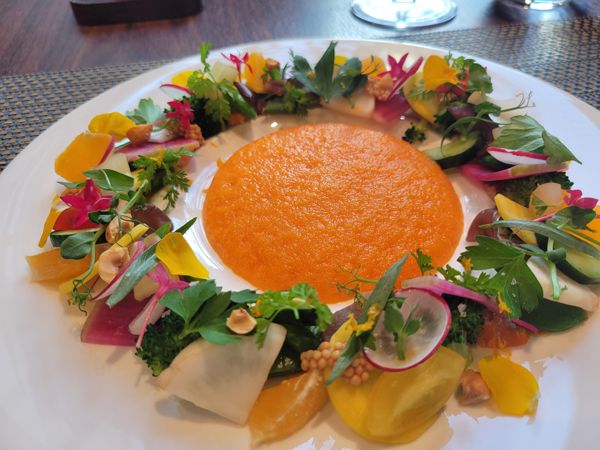 「ベジブーケ・ファースト」(冬野菜のサラダ 柑橘のエスプーマ)