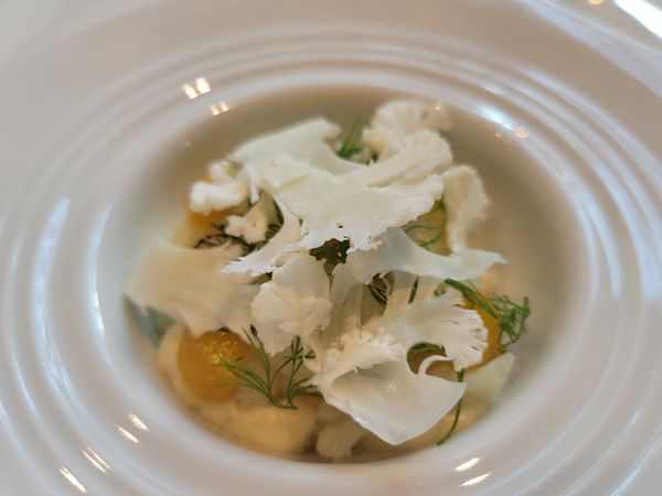 カリフラワーはピューレと生が使用されていて、まったく違ったおいしさを感じられます。
