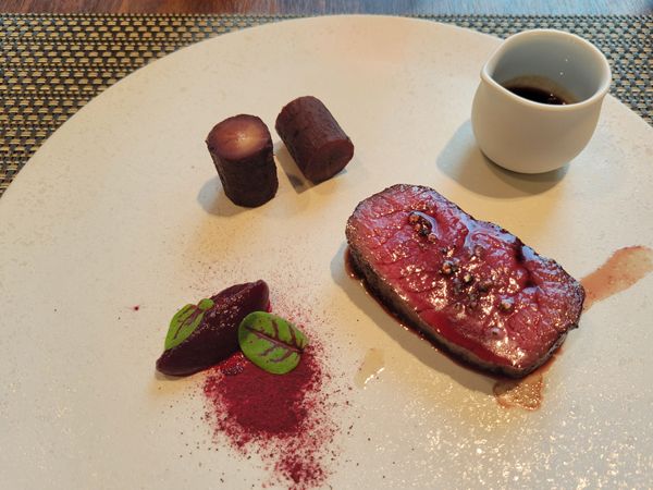 「蝦夷鹿ローストと発酵ビーツ ソースポワブラード」