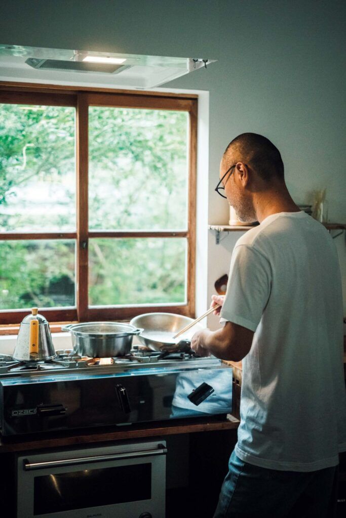 そうした日々の温かな時間は、暮らすこと、食べることに日々、愛を注いでいるからこそ育まれるものだろう。台所にある木の素材もまた、岡崎家の暮らしを優しく包む大切なパーツに思えてならない。