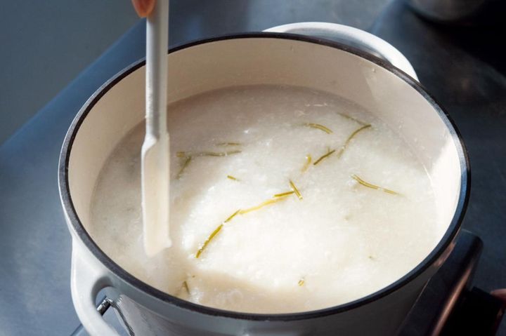 【4】弱火にし、ふつふつさせながら好みのやわらかさになるまで炊き、最後に塩を加える。