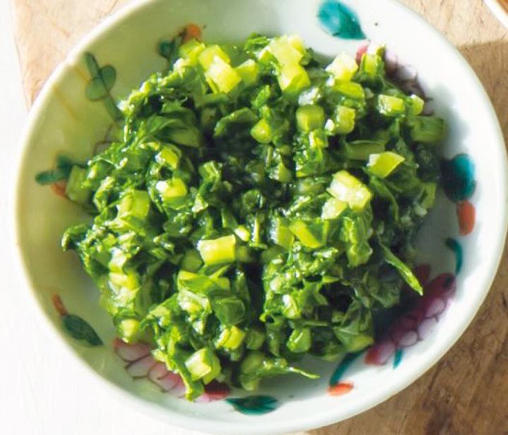 【1】青菜を細かく刻み、塩麹を混ぜる。